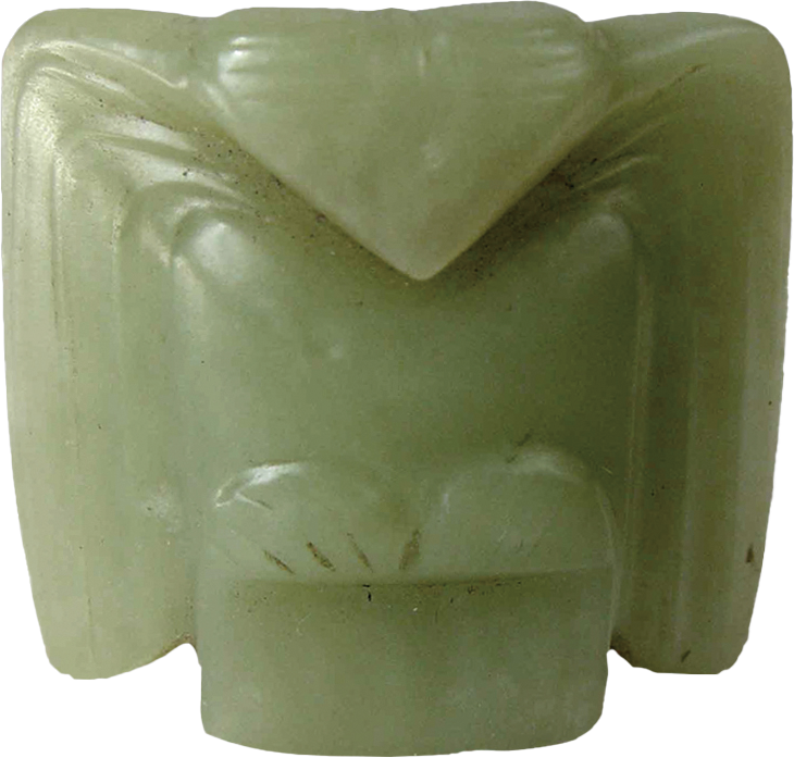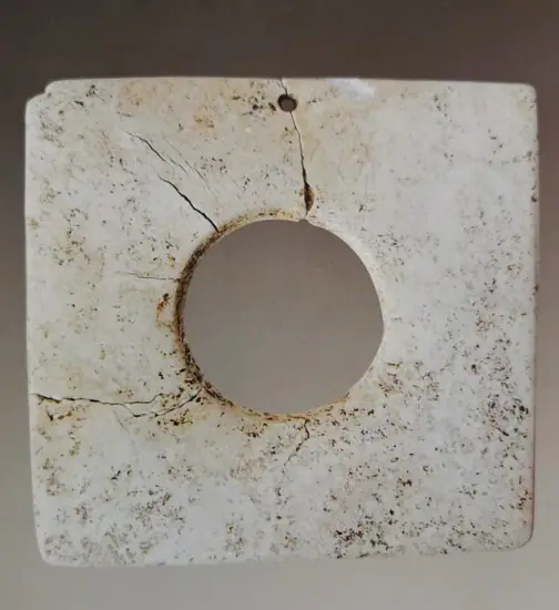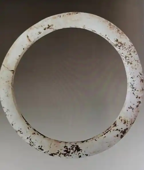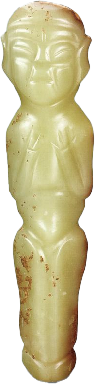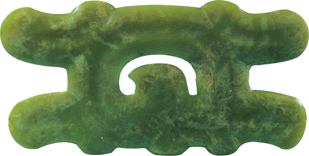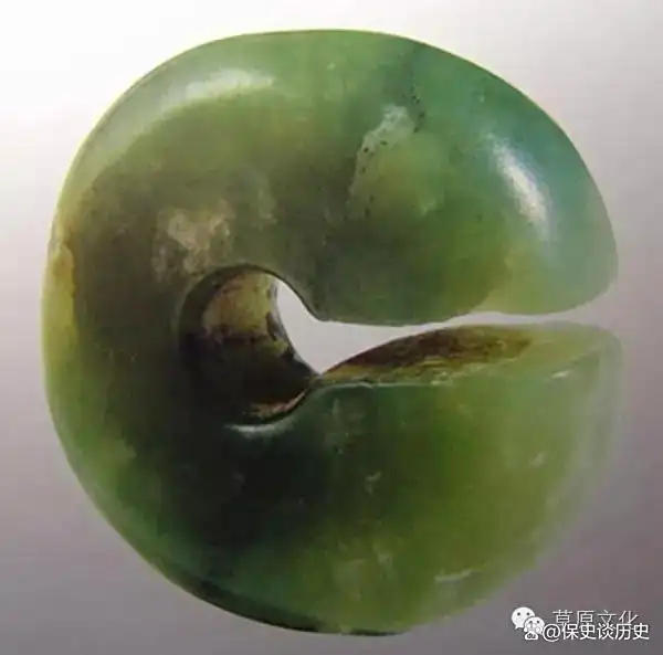 白音长汗遗址是在赤峰市林西县双井店乡白音长汗村南约0.5公里处的西荒山上,它也是地处西拉木伦河的北岸。白音长汗遗址的周围被大兴安岭南段余脉的群山所环绕,此山势平缓,山间有大片开阔地带,而遗址就坐落在西荒山的东侧缓坡地带上,墓葬区位于西荒山西部的山脊上面。白音长汗遗址共出土了8件玉器,器型主要有玉玦、玉管和蚕虫。在随后对三期的赵宝沟文化、红山文化和小河沿文化发掘中却都没有发现玉器。在M2的东南部发掘中,墓主人为双人合葬,东侧为25岁的男性,西侧为25岁的女性,两人都是仰身屈肢状态,随葬品是一件玉玦和一件玉管,还有一件石核形石锥,两件螺纹石棒,两件石臂钏,九件石珠,十九件蚌饰,总计是三十五件。