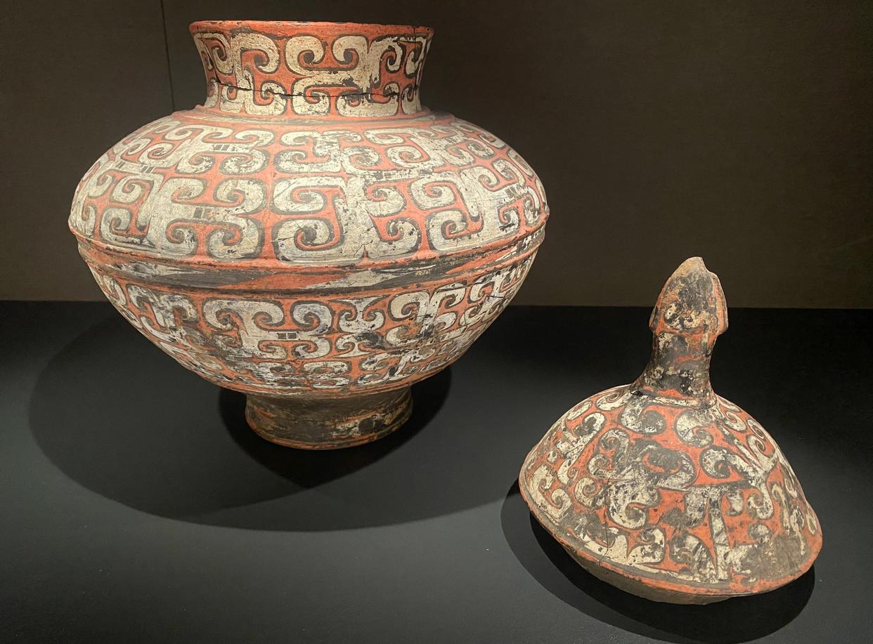 大甸子遗址位于内蒙古自治区敖汉旗兴隆洼镇大甸子村东南,地处大凌河支流的牤牛河上游。这个遗址属于夏家店下层文化时期,大约是公元前1600年左右,包括了居址和墓地两部分。在大甸子墓地中,考古学家们共清理了804座墓葬,出土了420件彩绘陶器。这些陶器不仅数量众多,而且种类丰富,各种随葬品也非常丰富。其中,彩绘陶器的集中出土无疑是大甸子墓地最重要的考古成果之一。
