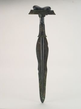 组合使用,出土铜鼎、陶盆、铜刀、铃形铜饰等器物。其中男女裸像青铜短剑为