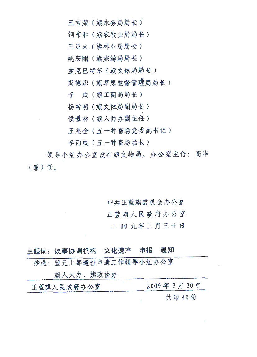 关于调整元上都遗址申报世界文化遗产领导小组的通知